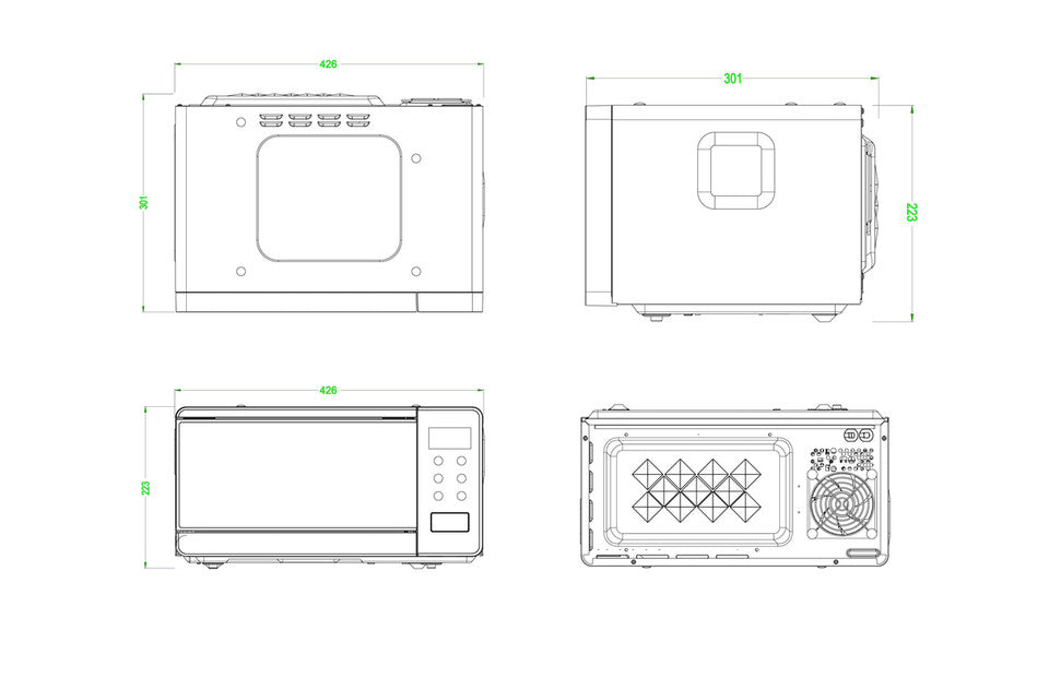 Yttermått: 426 (L) × 301 (D) × 223 (H) mm